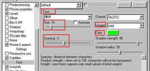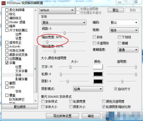 目前版本的ffdshow里關(guān)于字幕的設(shè)置有輕微的改變,請(qǐng)注意我圖中的設(shè)置