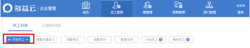 3、點(diǎn)擊上方“員工管理”或者下方“添加員工”,進(jìn)入到員工管理界面
