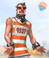雖然身著一身重刑犯服裝,但早已越獄成功,曾是一名喜劇演員,后因在表演中利用道具惡意殺死無(wú)辜觀眾而被捕入獄,后來(lái)又憑借其聰明才智成功越獄,為人狂妄,反社會(huì),好挑釁,但絕頂聰明,也許,逃獄后依然淡定身著重刑犯服裝對(duì)于他來(lái)講是一種對(duì)司法機(jī)關(guān)的赤裸裸的挑釁。
