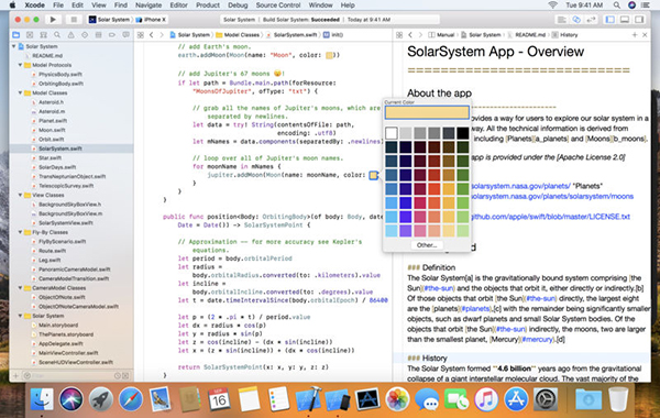 完全支持Swift編程Xcode 6為開發(fā)者引入了一種全新的設(shè)計(jì)和開發(fā)應(yīng)用的方式,深度支持Swift編程,開發(fā)者不僅能使用100%的Swift代碼來創(chuàng)建一款嶄新的應(yīng)用,還可以向已存在的應(yīng)用添加Swift代碼或框架,并在Swift或Objective-C中查看文檔。諸如“Jump to Definition”、“Open Quickly”等在Swift中均能很好地工作,甚至Objective-C的頭定義在Swift語法中也能良好地呈現(xiàn)。