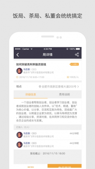 認(rèn)證成員均為企業(yè)家或者是企業(yè)KP成員,基于身份對(duì)等的本地化社交。