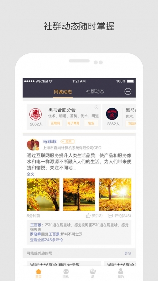 3、社交功能:本地化企業(yè)家實(shí)名制社交。