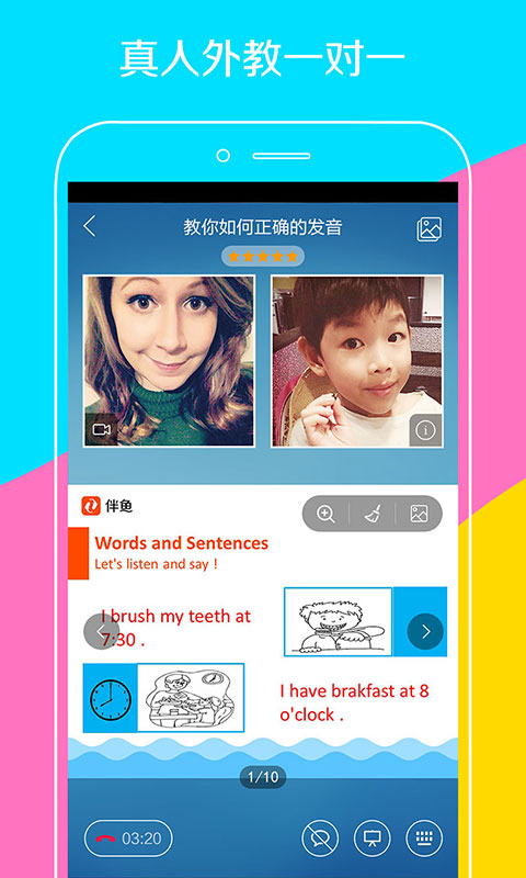 伴魚少兒英語(yǔ)app是一款專為3-12歲的小朋友打造的英語(yǔ)學(xué)習(xí)軟件,該軟件采用了外教一對(duì)一教學(xué)的方式,通過兒童動(dòng)畫,兒童繪本和英文歌曲等各類有趣的教材,幫助小朋友快速掌握英語(yǔ)知識(shí)。