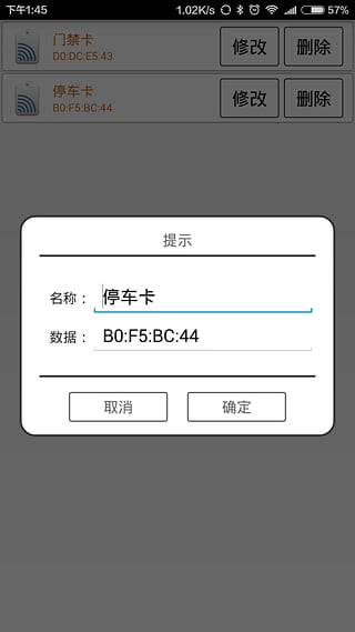 2、刷卡后,程序會自動存儲新卡片,用戶可在卡片管理界面給卡片命名,并可以發(fā)送卡片快捷方式到桌面,方便一鍵模擬;