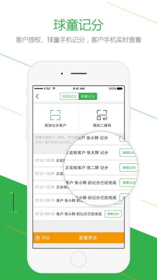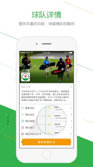 我們?yōu)楦咔蛲婕姨峁┝薊RP式高球管理服務(wù):球場(chǎng)訂場(chǎng)、球隊(duì)活動(dòng)報(bào)名、智能分組、實(shí)名交友、實(shí)時(shí)記分、成績(jī)直播、相冊(cè)管理、記分卡統(tǒng)計(jì)分析......一鍵搞定!