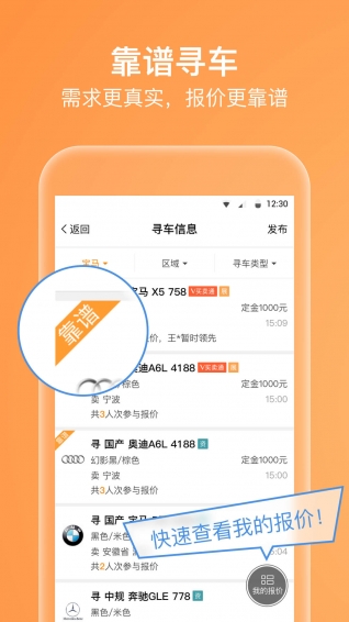 海量車源查詢、精準(zhǔn)車源報(bào)價(jià),為廣大4S店和汽車經(jīng)銷商提供最方便快捷的發(fā)布尋車、批量上傳車源、一鍵精準(zhǔn)搜索、多種報(bào)價(jià)方式、第三方交易擔(dān)保、時(shí)時(shí)站內(nèi)信息和語音溝通等服務(wù)。運(yùn)用互聯(lián)網(wǎng)的思維解決了4s店和汽車經(jīng)銷商找車難、賣車難的問題。【軟件特點(diǎn)】