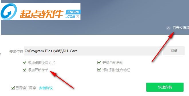 1、點擊DLLCare_Setup.exe啟動,這里是軟件軟件的安裝設(shè)置界面,勾選閱讀同意的內(nèi)容安裝
