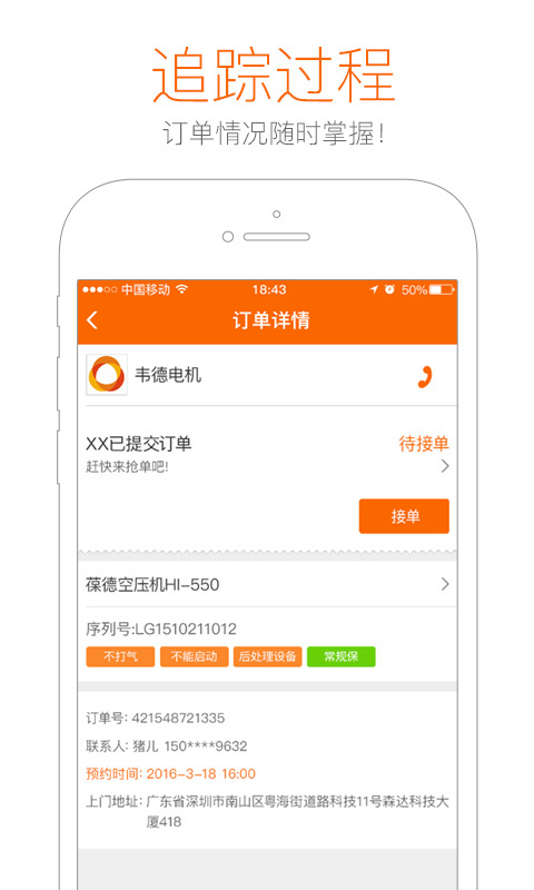 工業(yè)幫手師傅端APP是一款專為設(shè)備維修師傅推出的辦公管理類手機(jī)應(yīng)用,幫助維修師傅廠家直接拿貨,隨時(shí)隨地在線搶單,訂單隨時(shí)掌握等服務(wù),大大提高了他們的工作效率。