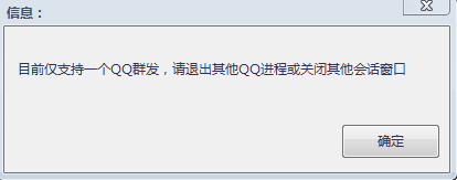 1.獲取QQ句柄,注意:軟件目前僅支持一個(gè)QQ群發(fā),如果電腦上掛有一個(gè)以上的QQ,請退出其他QQ,保留需要群發(fā)的QQ。如果您只保留了1個(gè)QQ,但仍遇到以下提示:
