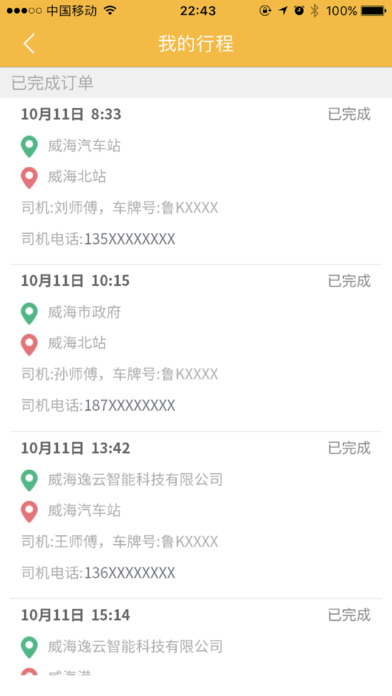 6.行程記錄,展示用戶叫車成功的記錄;