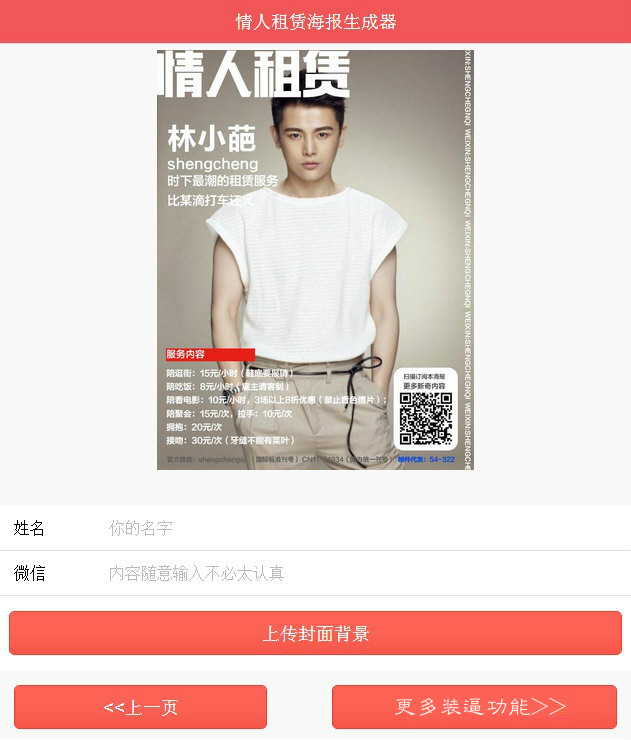 情人租賃海報生成器是一款不錯的海報圖片生成工具。該工具操作簡單,容易上手,用戶填入自己的素材和信息就可以自動生成有趣的單身出租海報,在情人節(jié)用這款軟件惡搞,絕對能夠給你帶來各種樂趣。