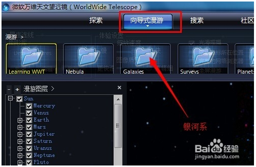 向?qū)铰危?br />點(diǎn)擊主菜單中的向?qū)铰?,選擇一個(gè)星系,這里以銀河系(galaxy)為例。