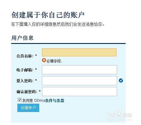 如圖,填寫會員名稱,郵箱,密碼等,點擊創(chuàng)建賬戶