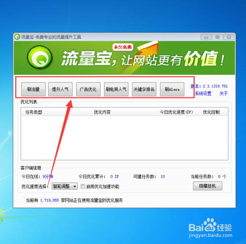 1、綠色免費(fèi):流量寶是一款綠色軟件,無需注冊。只需下載到桌面上直接運(yùn)行,永久免費(fèi)。2、操作簡單:運(yùn)行軟件,輸入要優(yōu)化的網(wǎng)址,點開始優(yōu)化即可。