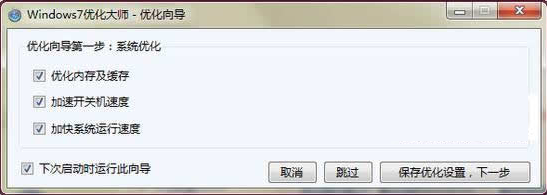 Win7優(yōu)化大師優(yōu)化步驟Win7優(yōu)化大師啟動后,會帶領用戶進行七步優(yōu)化win7向?qū)А?br />