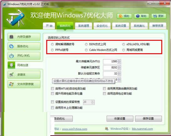 網(wǎng)速優(yōu)化中,軟件會根據(jù)用戶不同的網(wǎng)絡類型,將其網(wǎng)絡進行最大程度的整理、優(yōu)化,以達到網(wǎng)絡資源的最大實用化