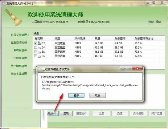計算機的磁盤進行一個大規(guī)模的整理、清除。由于我們在長期使用電腦的過程中而不注重電腦殘留的清理,從而會導致系統(tǒng)的反應速度越來越慢,定時的對計算機進行磁盤及垃圾文件的清理顯得尤為重要首先勾選需要清理的磁盤,而后單擊“開始查找垃圾文件”,軟件即會自動在所選磁盤中尋找那些是應該清楚的塵垢文件,這個過程可能會很長,請耐心等待