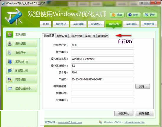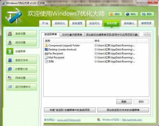 在系統(tǒng)設置中,用戶可對系統(tǒng)的相關(guān)信息做修改,包括系統(tǒng)的基本信息、啟動項設置、右鍵菜單、系統(tǒng)文件夾等等這些功能的修改其中在一大部分情況下是根據(jù)自己的喜好來的,例如你在WindowsXP中習慣于某些文件夾或者右擊菜單的選項,在這里可以根據(jù)需求自行修改為以前的樣式,讓你“身在曹營(win7)心在漢(WindowsXP)”