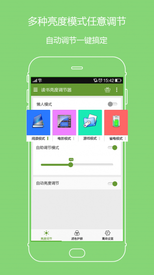 提供5%到100%任意亮度調(diào)節(jié),4種智能模式,濾光護眼模式,狀態(tài)欄調(diào)節(jié)功能,提升待機時長40%,擴展系統(tǒng)能力,讓亮度調(diào)節(jié)更加專業(yè),操作更加簡單!摩嘎科技,專注提供簡單,好用,接地氣的好工具!系統(tǒng)自帶的亮度調(diào)節(jié),黑暗中,刺眼的屏幕仍然讓你眼睛疲勞,影響枕邊人休息,4種模式,無限降低屏幕亮度,總有一個亮度適合你,夜晚微信、陌陌、購物、閱讀、被窩必備!呵護您的眼睛,節(jié)省手機用電,就這么簡單。