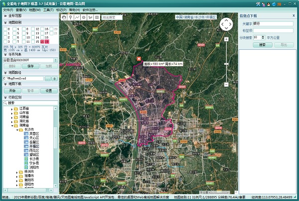 4. 下載方式靈活多樣,操作簡單方便,只要拖動幾下鼠標,就可按圓形,矩形,不規(guī)則多邊形和行政區(qū)范圍下載。