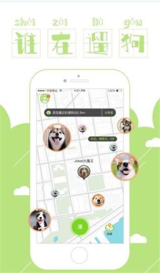 附近狗狗:實(shí)時(shí)顯示附近正在遛的狗狗,幫您的狗狗找到合適的小伙伴;