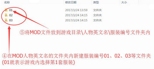 4.在MOD人物英文名的文件夾內(nèi)新建服裝編號01、02、03等文件夾(01就表示游戲內(nèi)選擇第1套服裝)