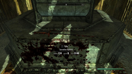 上古卷軸5:天際重制版 矮人鋸齒太刀MOD;鋸齒應(yīng)該是一種輕量化設(shè)計,因此即使采用了烏木材料,它依然與刀鋒戰(zhàn)士所用的阿卡維亞彎刀重量相當。手柄使用了皮革和樹脂包裹,使之更加趁手,從而讓使用者可以更快地揮擊。劍身上的符文意義不明,可以確定一半的符文來自于矮人字母表,但是另一半則明顯不是。鋸齒太刀是一把矮人武器,由矮人金屬和烏木鍛成。你可以在楚安德-澤爾武器室(Nchuand-Zel Armory,即馬卡斯從石下要塞進入的矮人遺跡)的一個沾滿血跡的石臺上找到它。【使用方法】