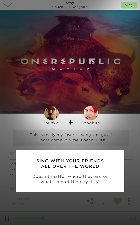 Sing! 的聲音增強(qiáng)技術(shù)讓你每次盡展美妙歌喉。 想加入一點(diǎn)比賽元素? 使用特殊的聲音過濾器,讓你的表演更加超凡獨(dú)特。 Sing! 是一個(gè)歡樂的互助社區(qū),鼓勵(lì)和贊賞各種形式的音樂創(chuàng)作。 歡迎與來(lái)自全球各地的歌手競(jìng)奪歌手排行榜頭籌。