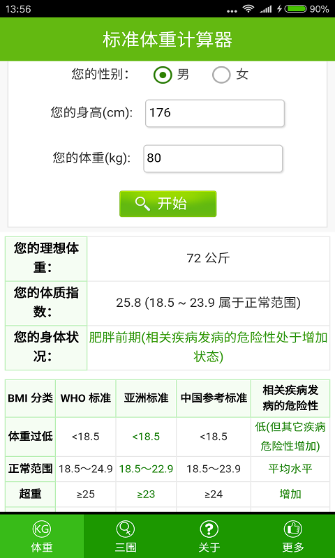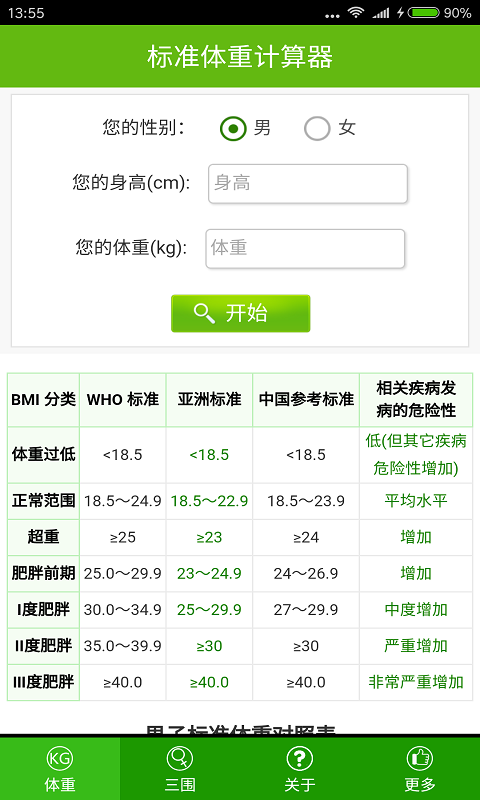 為大家提供標(biāo)準(zhǔn)體重計(jì)算,顯示理性體重,體質(zhì)指數(shù),身體狀況,根據(jù)身高測(cè)標(biāo)準(zhǔn)三圍數(shù)據(jù),簡(jiǎn)單好用,歡迎下載使用。