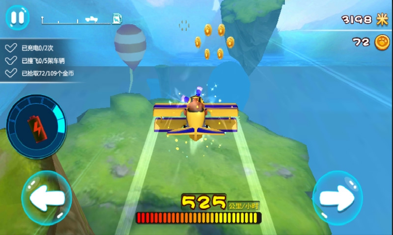 選擇角色和坐騎進(jìn)入游戲競速畫面,點(diǎn)擊左右下方的按鈕來控制角色左右移動(dòng)