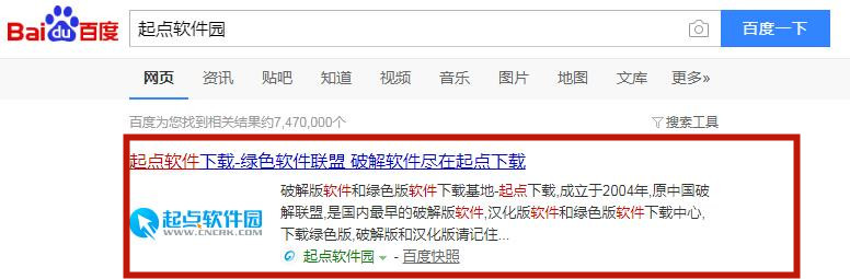 1.打開瀏覽器百度搜索起點軟件園,點擊搜索結果第一個進入起點軟件園