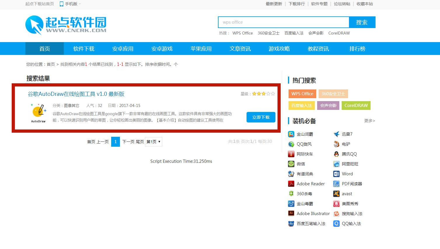 2.進入起點后,搜索AutoDraw,點擊第一個進入下載頁面