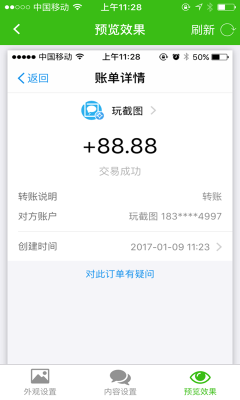 微信聊天生成器一款非常流行的對話制作生成神器,從微信到支付寶,無所不能,只需要輸入對話內(nèi)容,便能自動生產(chǎn)聊天記錄的圖片, 輕松而便捷。在軟件里你可以自定義你的微信頭像、名稱、圖片、內(nèi)容和發(fā)布時間等等~生成任何你想要的效果。玩截圖適合做微商的你,微信轉(zhuǎn)賬截圖,微信交易聊天截圖,錢包余額,還可以發(fā)朋友圈,充大款,吸引美女帥哥圍觀。哇~軟件里面還有使用教程。愛玩的你,快快來體驗吧~