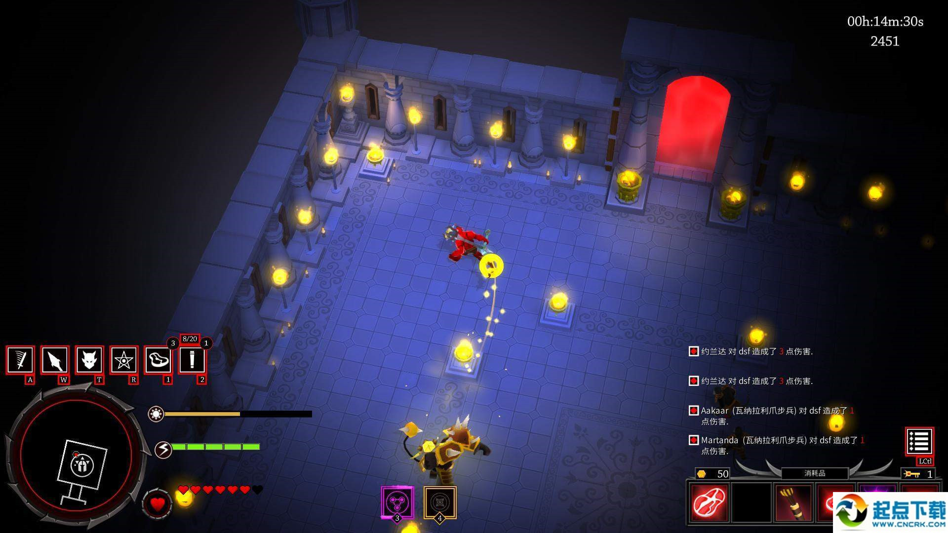 這關(guān)boss召喚的小弟又是非常弱的長矛兵,沒什么壓力,這幾關(guān)的boss都大同小異,缺點非常明顯,技能釋放也有明顯的前搖動作,只要注意躲避,有一把好的武器配上技能,基本簡單難度通關(guān)只要熟悉了以后都是問題不大的。