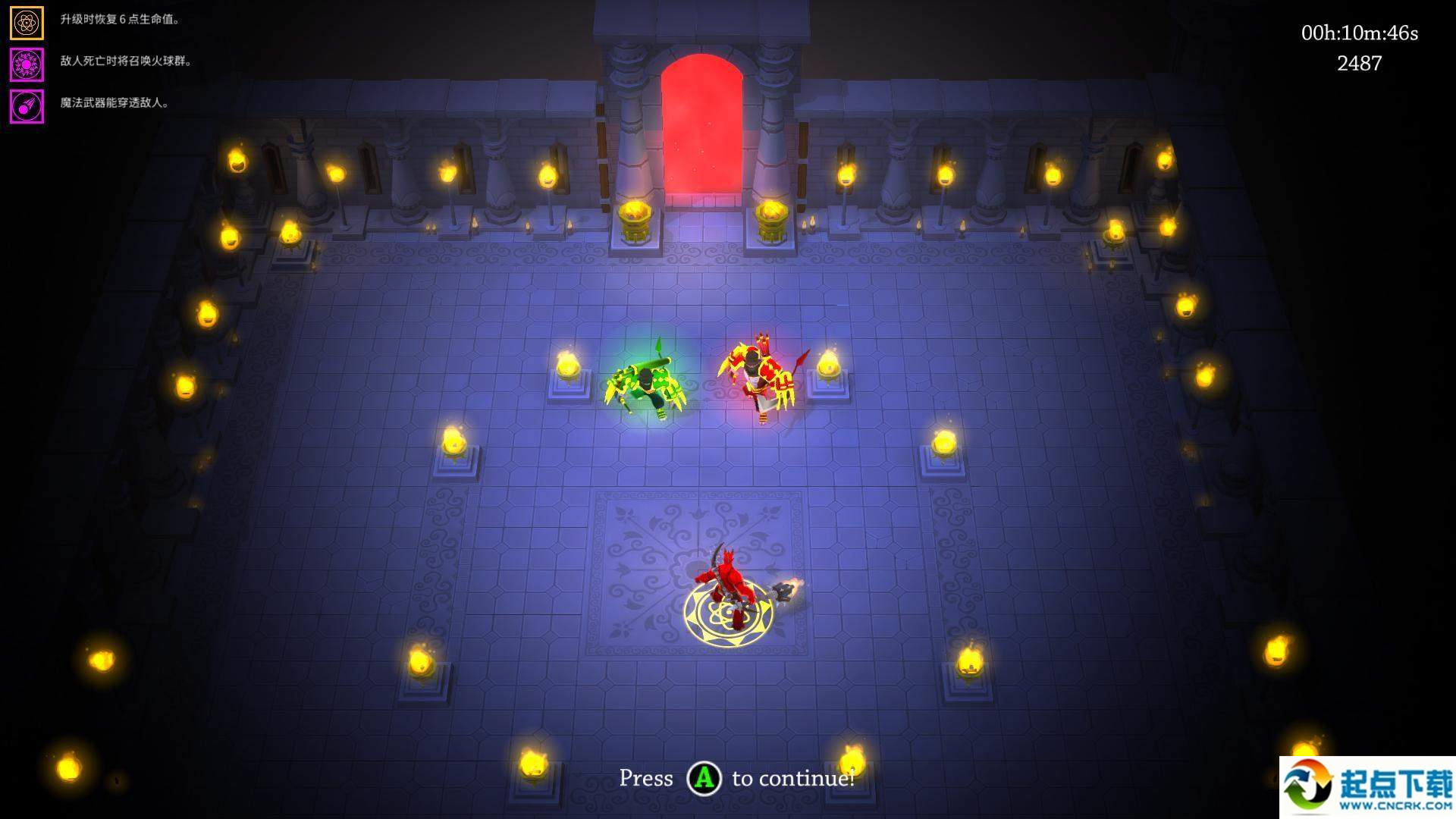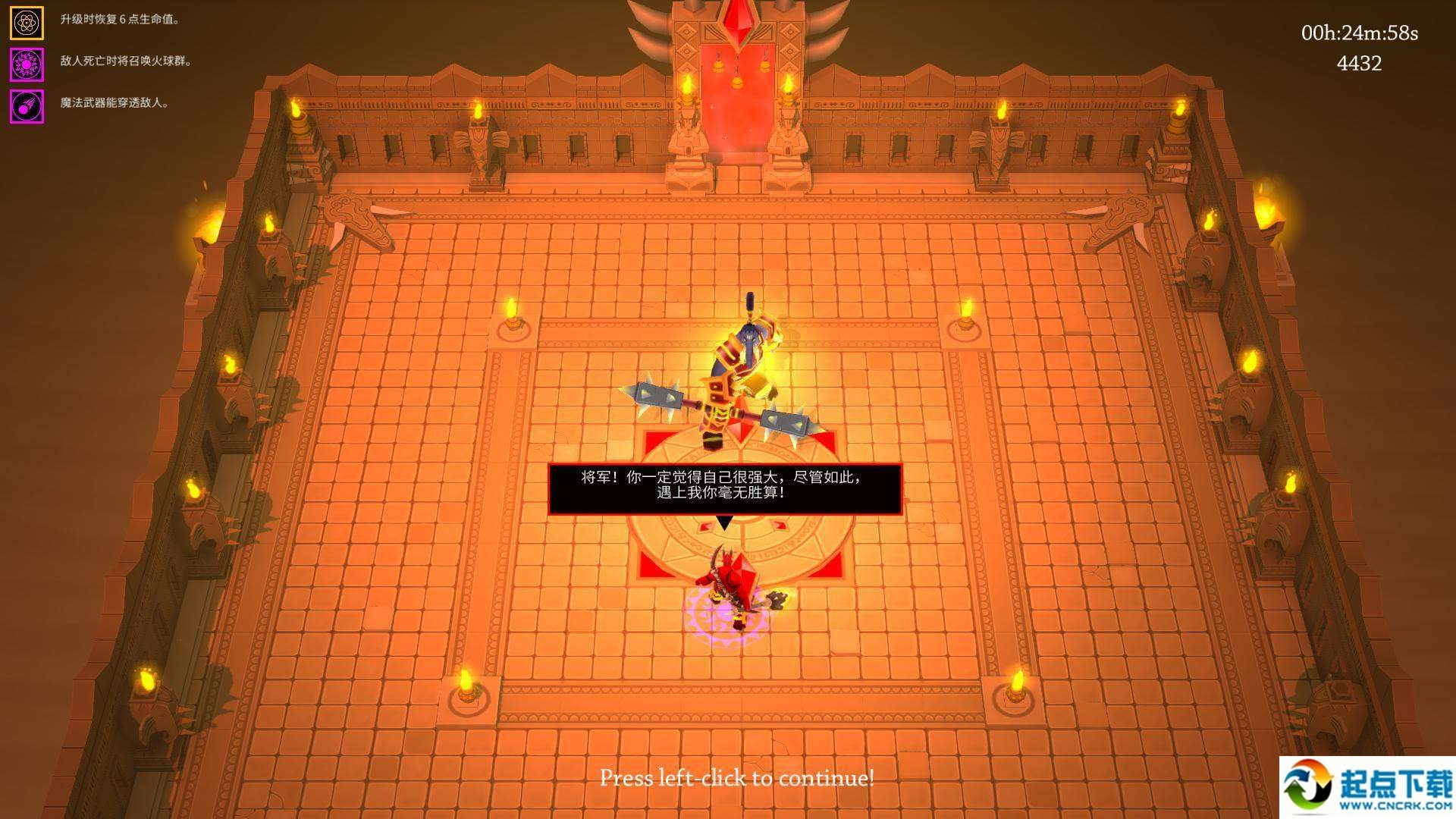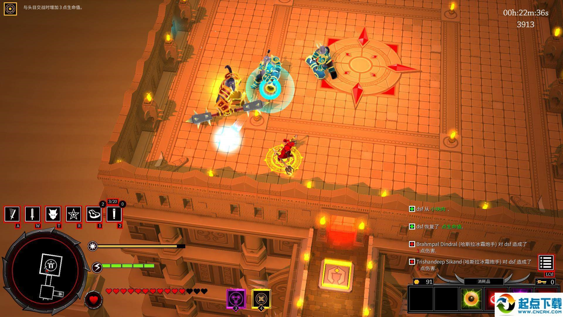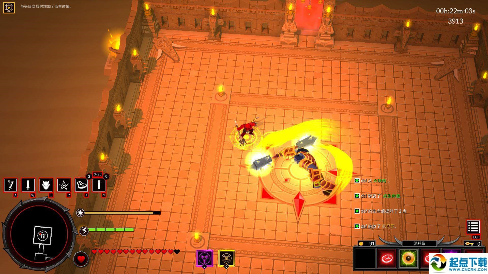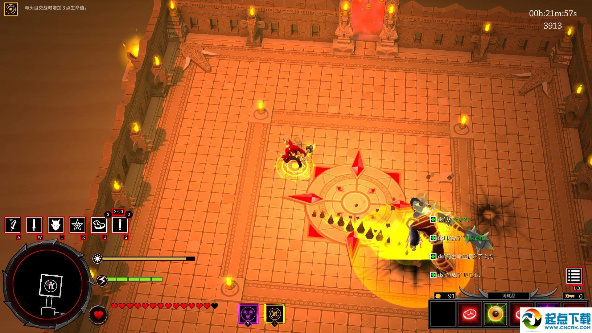 2.boss會發(fā)向四周發(fā)射帶燃燒效果的箭矢,由于密度不大,非常容易躲避;