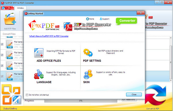 Rtf轉(zhuǎn)換到PDF轉(zhuǎn)換器能批量轉(zhuǎn)換RTF, TXT, JPG格式到PDF, 節(jié)省時(shí)間, 同時(shí)支持多核CPU,讓你轉(zhuǎn)換的過程中更快捷更有效。 Rtf轉(zhuǎn)換到PDF轉(zhuǎn)換器可以設(shè)置個(gè)別或所有輸出PDF打開密碼。
