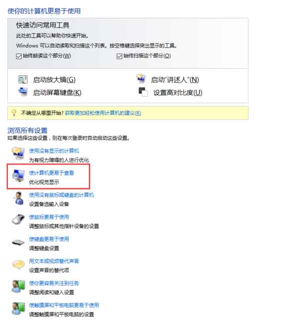 D. 點(diǎn)擊"使計(jì)算機(jī)更易于查看";
