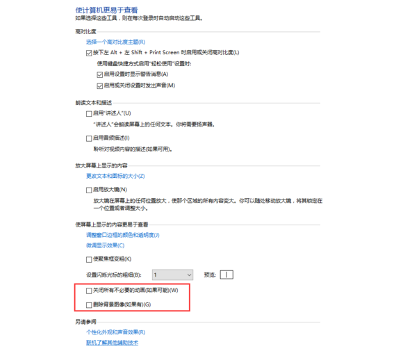 2. 查看"關(guān)閉所有不必要的動(dòng)畫" 和"刪除背景圖像" 是否被勾選。