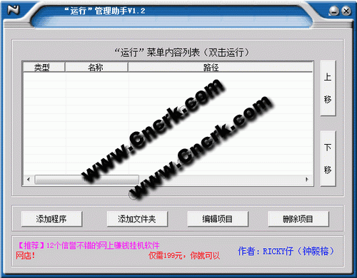 “運行”管理助手就是一個專門實現(xiàn)該功能的程序,通過該軟件,你可以隨意往“運行”里面添加各種程序,然后直接在“運行”菜單里面輸入程序名稱就可以啟動程序。另外,該軟件是一個完全免費的綠色軟件,直接解壓后就可以使用