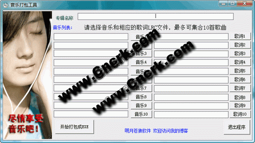 可以把10首歌的歌詞、歌曲制作成1個(gè)EXE文件,打包后的音樂exe文件在任何電腦都可以播放。 音樂編碼控件,保證音質(zhì)類似于CD效果