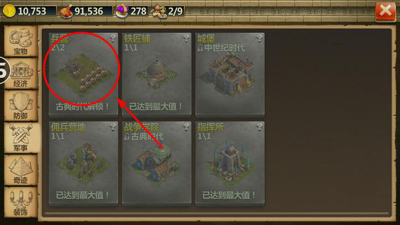 9.此玩法推薦升級建筑序列為:城鎮(zhèn)中心-風(fēng)車-市場-鐵匠鋪-兵營-種菜建筑-防御建筑