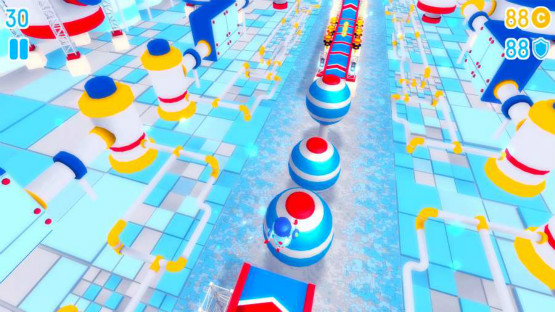 《機器人障礙賽(Oopstacles)》采用了無限挑戰(zhàn)的模式,玩家們進入游戲后,選擇好機器人,然后就開始奔跑挑戰(zhàn),面對前方層出不窮的障礙,也一直勇往直前。