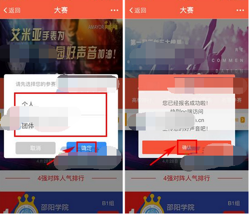 2)點擊選擇參賽類型,接著點擊【確定】,然后點擊【確認(rèn)】即可。(如下圖)