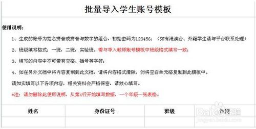 導(dǎo)入教師和學(xué)生的賬號模板,班級名稱可自定義但必須一致,比如“一班”對應(yīng)“一班”,否則教師無法正確看到本班級學(xué)生賬號,今后各項數(shù)據(jù)均無法匹配。