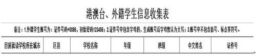 13.如學(xué)校有港、澳、臺地區(qū)或外籍學(xué)生,無大陸身份證,其監(jiān)護(hù)人有一方是大陸人,可以使用大陸監(jiān)護(hù)人身份證號碼,如監(jiān)護(hù)人都是外籍人士,各學(xué)校收集好外籍學(xué)生信息反饋給教育局收集整理發(fā)送平臺相關(guān)老師,我們會協(xié)助進(jìn)行導(dǎo)入。