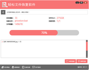 輕松文件恢復(fù)軟件是一款免費(fèi)好用的文件恢復(fù)工具。該工具可支持反刪除恢復(fù)、格式化恢復(fù)、分區(qū)恢復(fù)、深度恢復(fù)、鏡像恢復(fù)以及上次掃描結(jié)果等功能快速恢復(fù)被刪除的文件及數(shù)據(jù)。