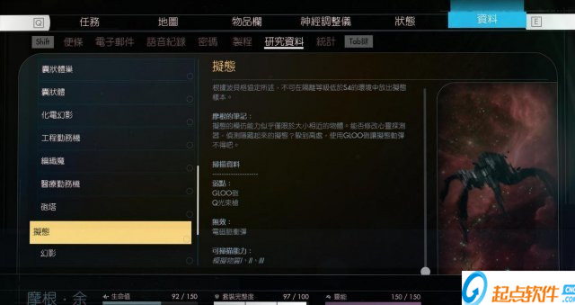 模擬物質(zhì)2(4):模擬臨近物體的樣貌,隱藏自身形體。可模擬炮塔等稍微復(fù)雜的機(jī)器。每秒消耗2點(diǎn)靈能點(diǎn)數(shù)。