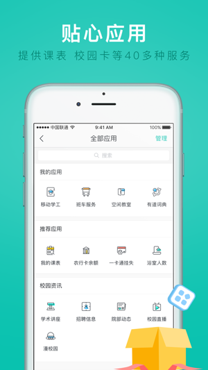 【功能豐富實(shí)用】 多種實(shí)用校內(nèi)應(yīng)用,涵蓋學(xué)工應(yīng)用、教務(wù)信息、生活服務(wù)、學(xué)習(xí)工具等方面