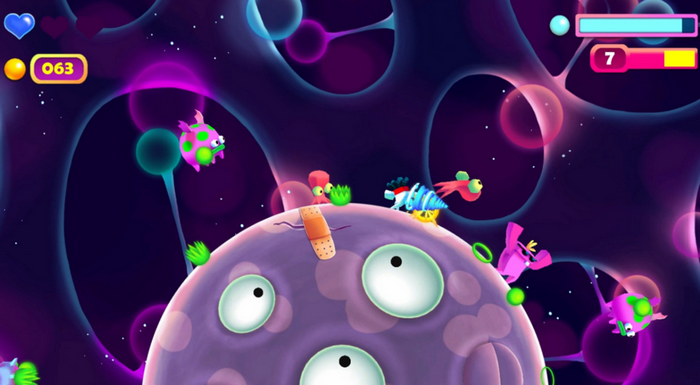 目標是摧毀你行走的大球體。但你不能如此輕易地傷害它!在對它的表面造成足夠的傷害后,你進入母體微生物,在那里你將不得不在終極攤牌中摧毀它的核心!