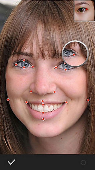 問:調(diào)整特征點(diǎn)時(shí),無法移動(dòng)特征點(diǎn),怎么辦?答:無法移動(dòng)特征點(diǎn)的主要原因有兩個(gè):1. 特征點(diǎn)過擠。您可以用pinch手勢(shì)局部放大您要調(diào)整的特征點(diǎn),直至特征點(diǎn)清晰到手指可觸碰。2. 未真正選中特征點(diǎn)。那么,如何選中特征點(diǎn)?長按特征點(diǎn),直至手指上方出現(xiàn)放大鏡。出現(xiàn)放大鏡表示此特征點(diǎn)已被選中??焖冱c(diǎn)擊關(guān)鍵點(diǎn)無法選中特征點(diǎn)。另外,如果你長按的位置不在特征點(diǎn)上,長按則選中了圖片。此時(shí)移動(dòng)手指可移動(dòng)圖片的局部瀏覽區(qū)域。再次點(diǎn)擊,可取消圖片選中狀態(tài)。